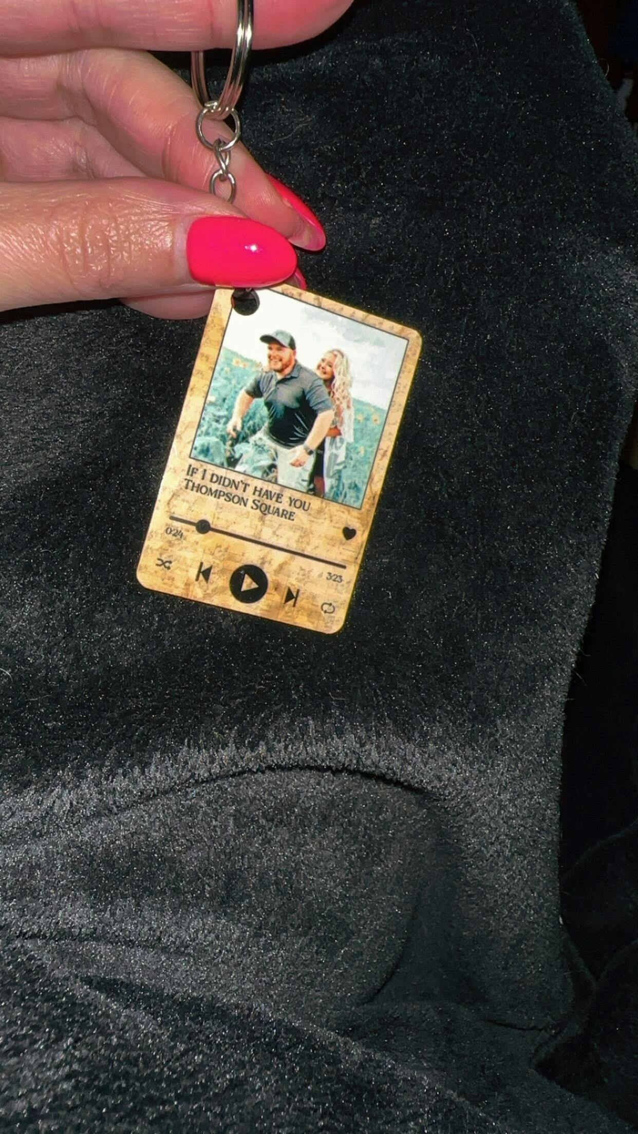 Double sided keychain with custom photo & Your song of choice!