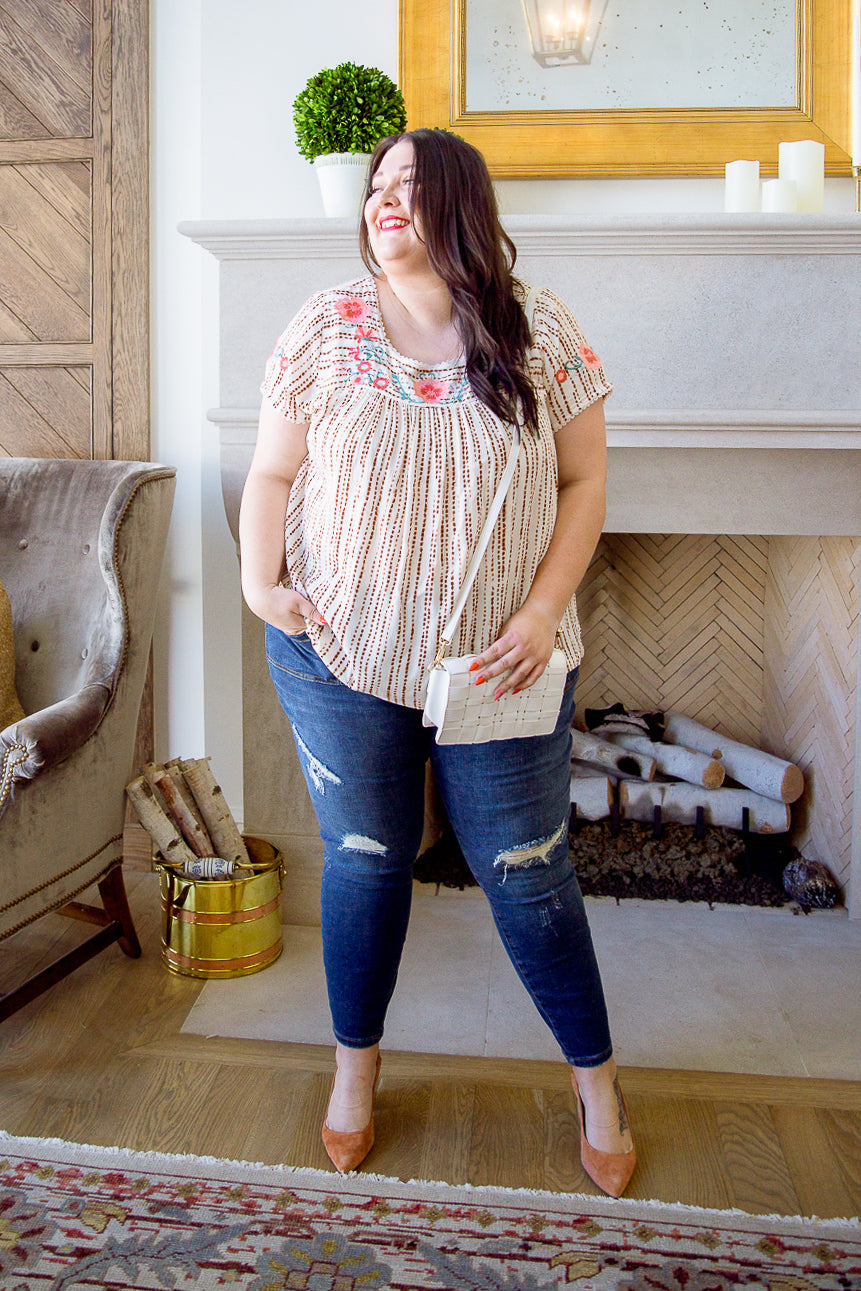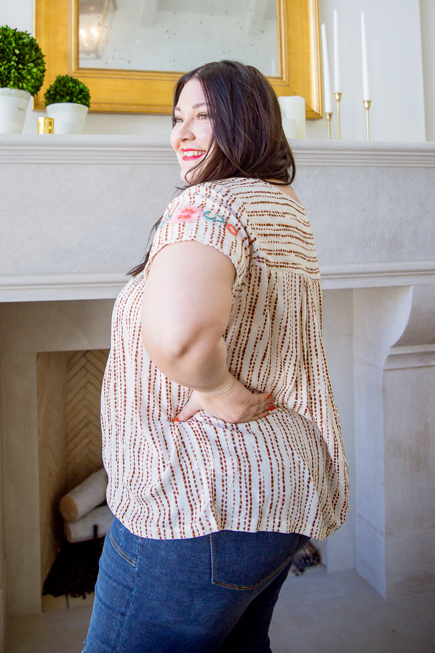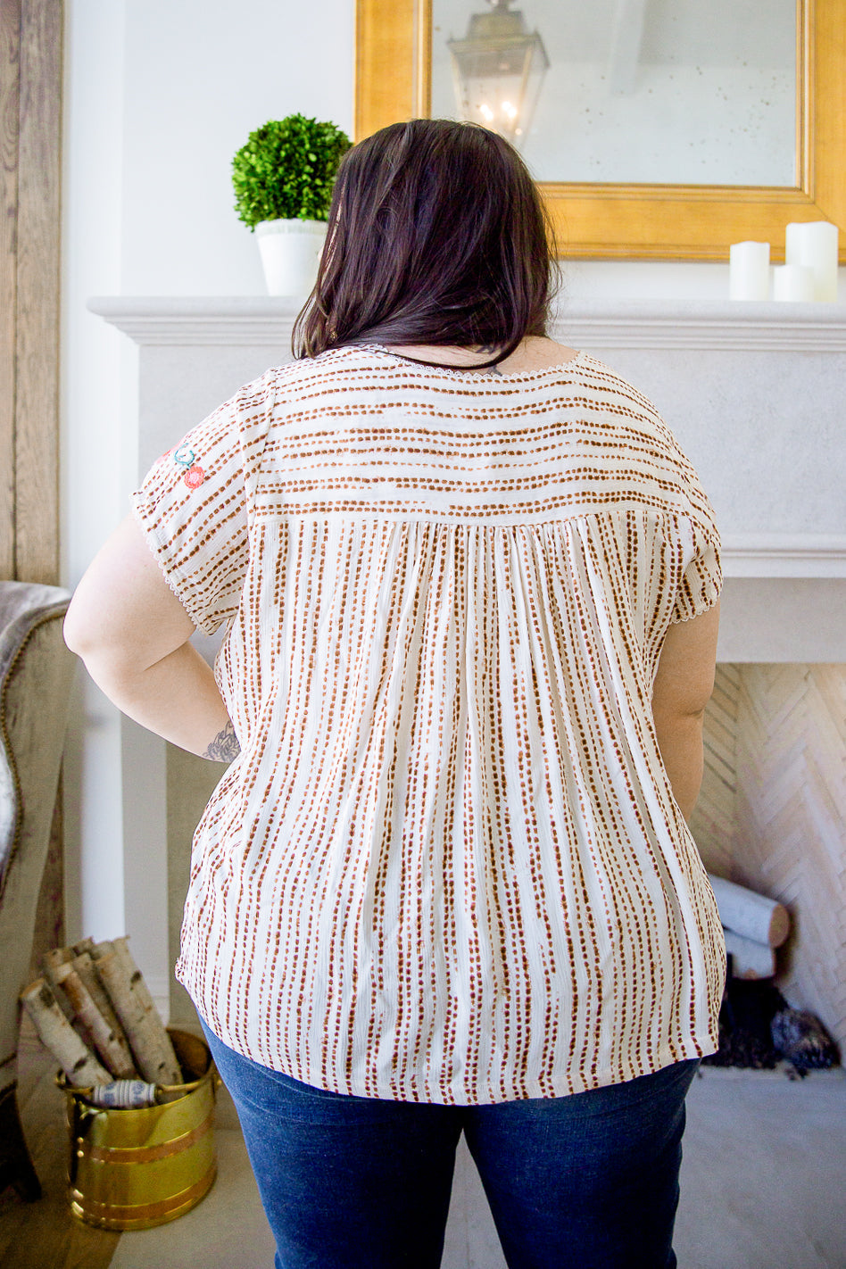 A unique and bold top made just for you! A dotted, striped print makes up this top with floral embroidery along the neckline and sleeves, lined in a lace trim. So many perfect details in this top, we know you'll fall in love!