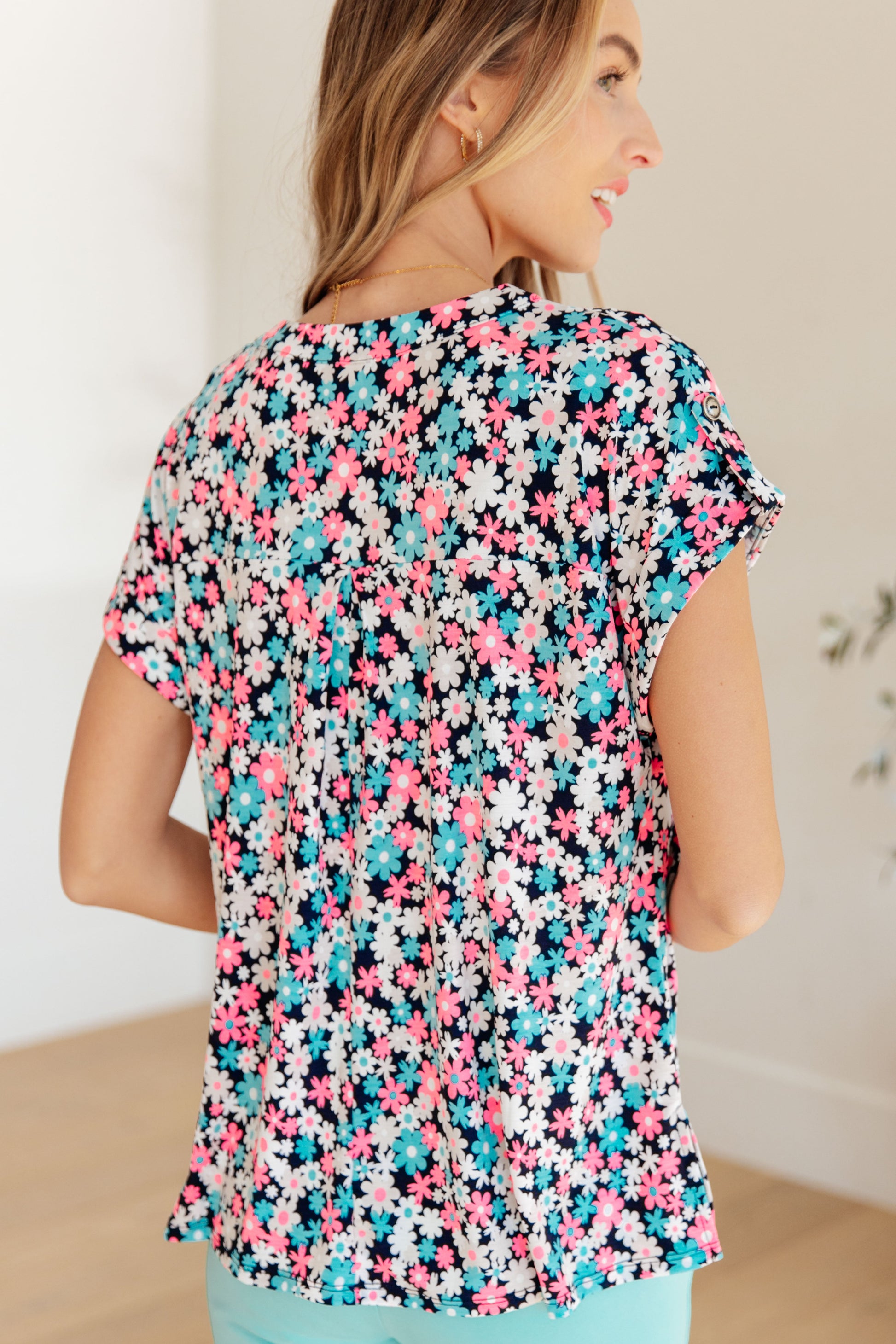 Lizzy Cap Sleeve Top in Navy and Hot Pink Floral