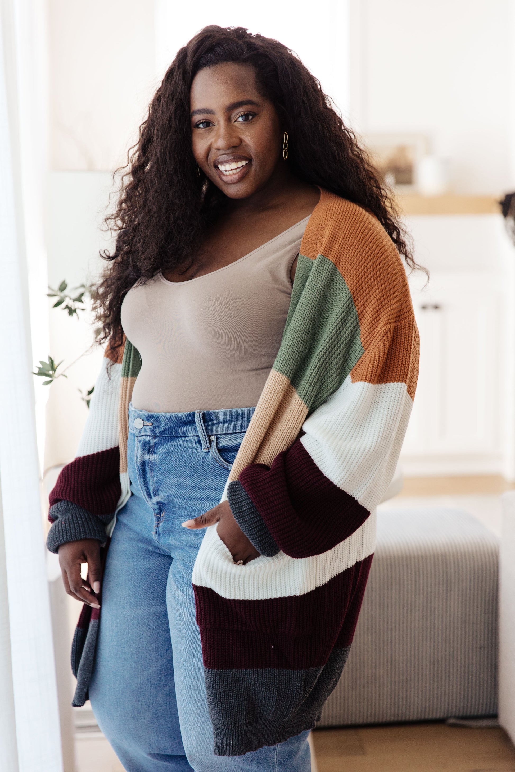 This Long Drive Home Striped Cardigan is the perfect way to add some cozy flair to your look. With its knit construction, color block stripes, balloon sleeves and two front pockets, this cardigan will keep you warm and stylish. Feel comfortable and confident wearing this open front sweater while you stay stylish and put-together.