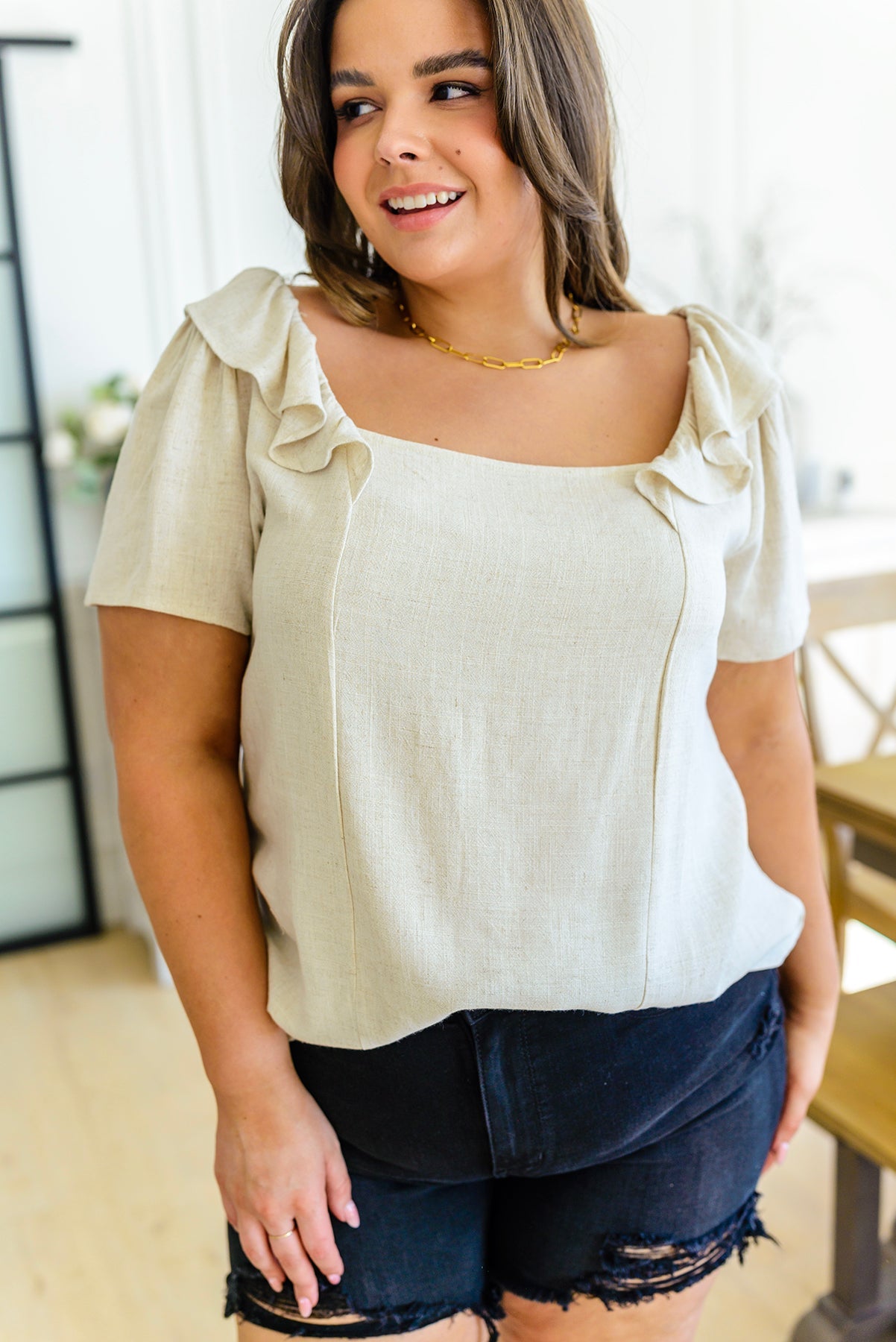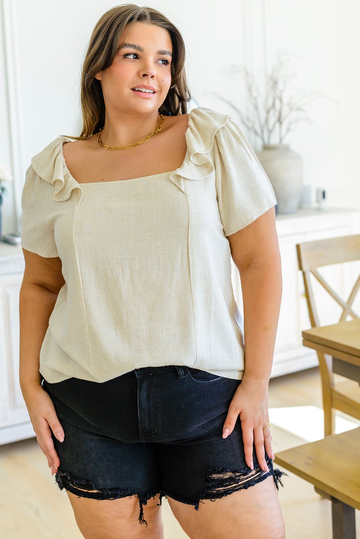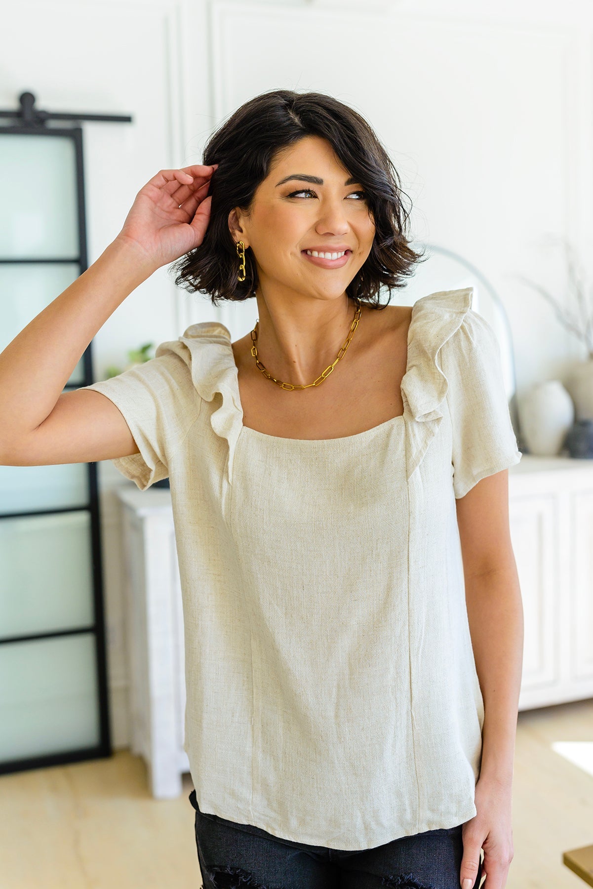 The Old Town Moments Top is so simple yet cute and will pair well with any bottoms! The square neckline and ruffle detail at the shoulders gives this top a feminine yet classy element. We promise you're going to love it!