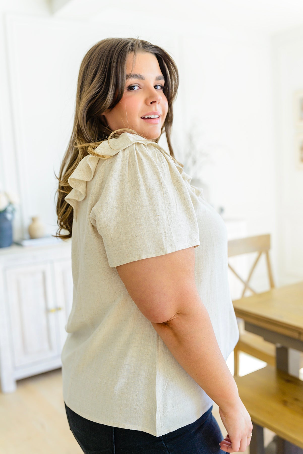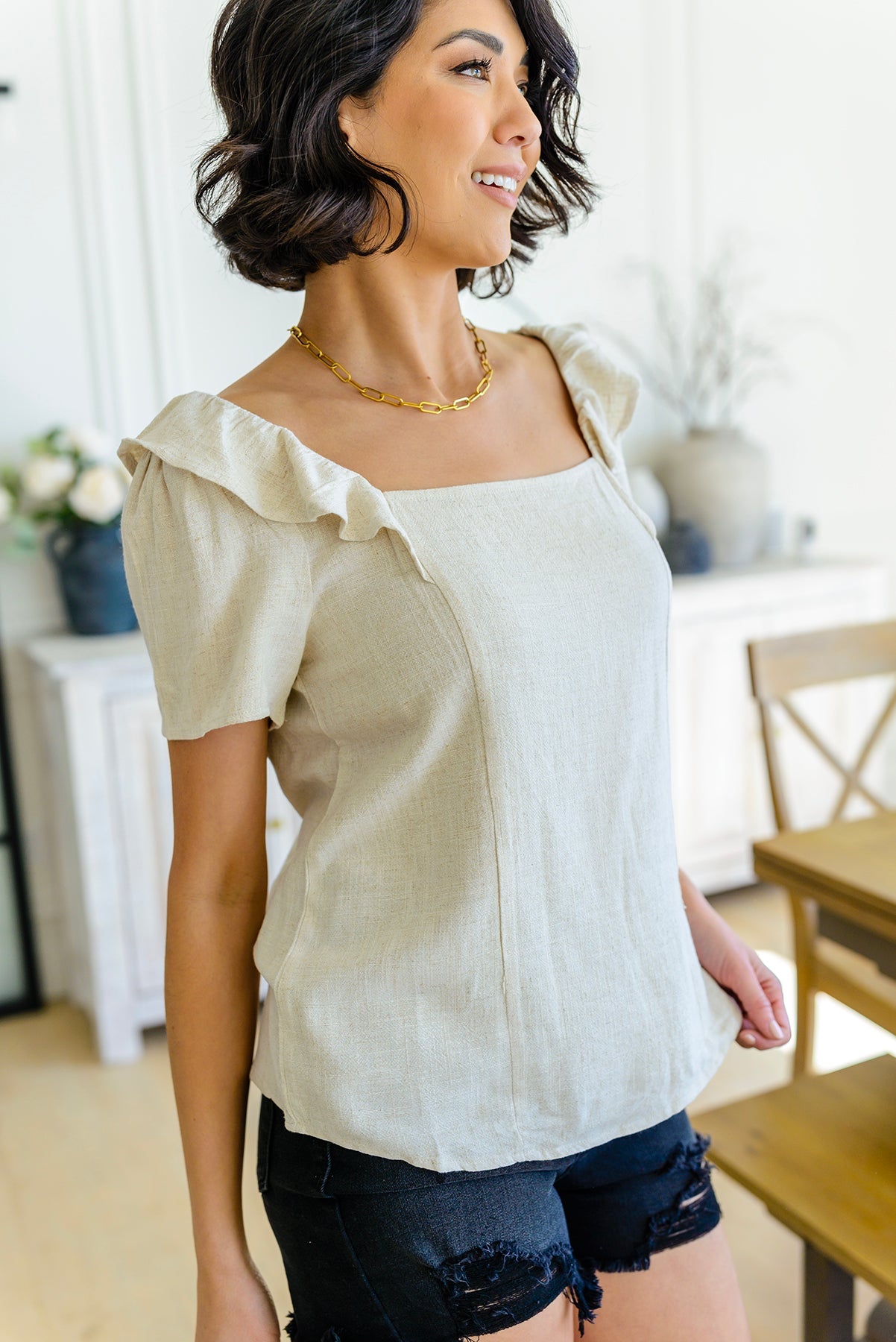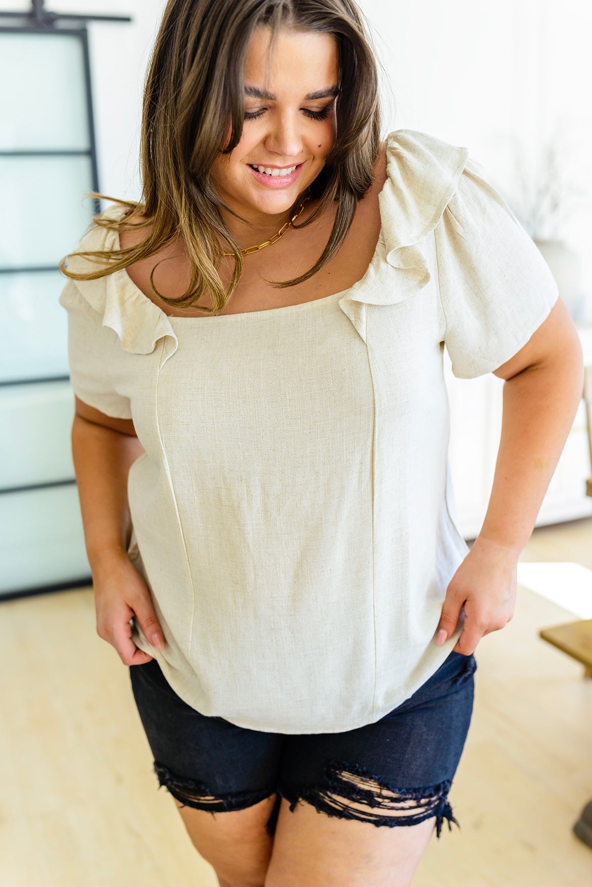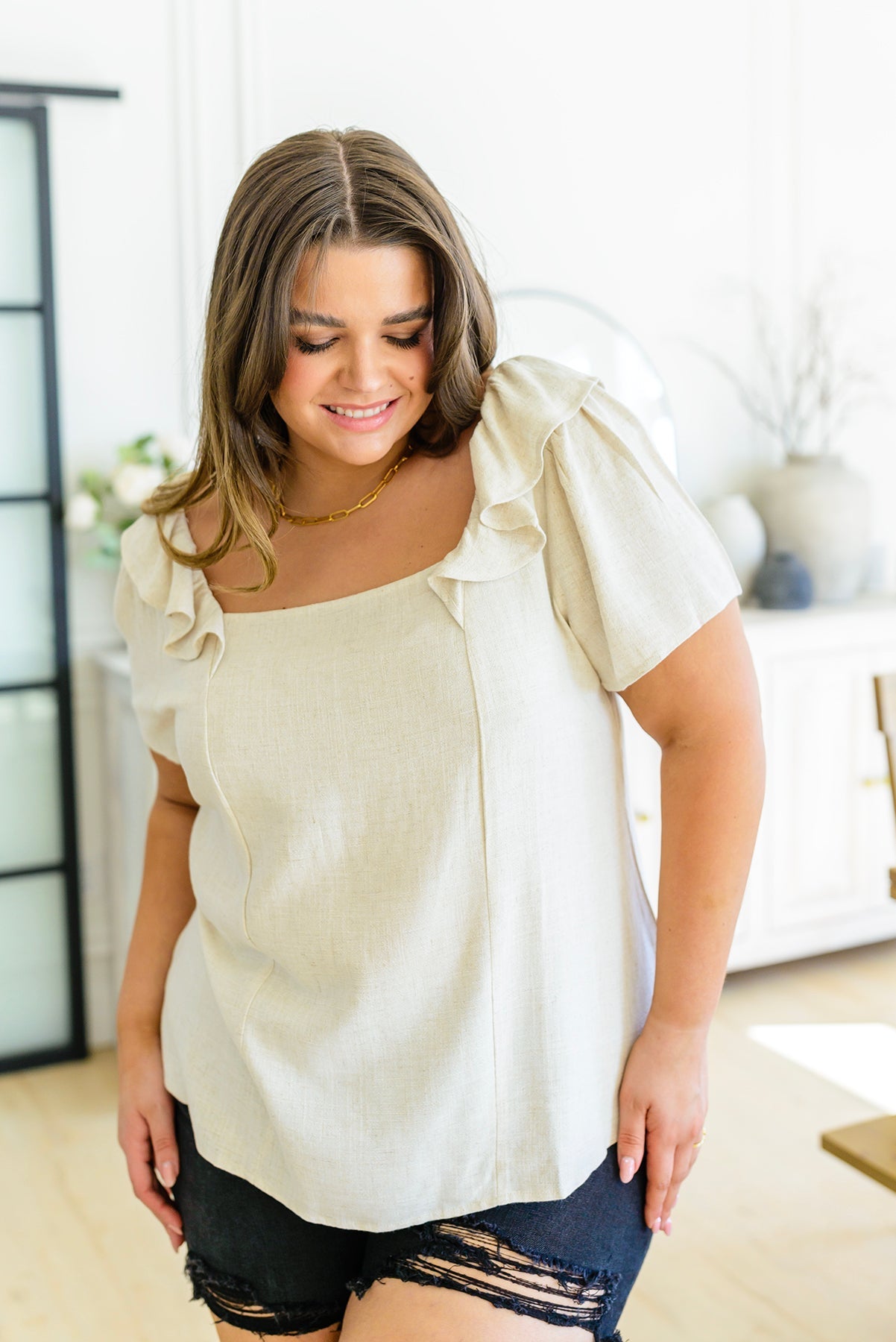 The Old Town Moments Top is so simple yet cute and will pair well with any bottoms! The square neckline and ruffle detail at the shoulders gives this top a feminine yet classy element. We promise you're going to love it!