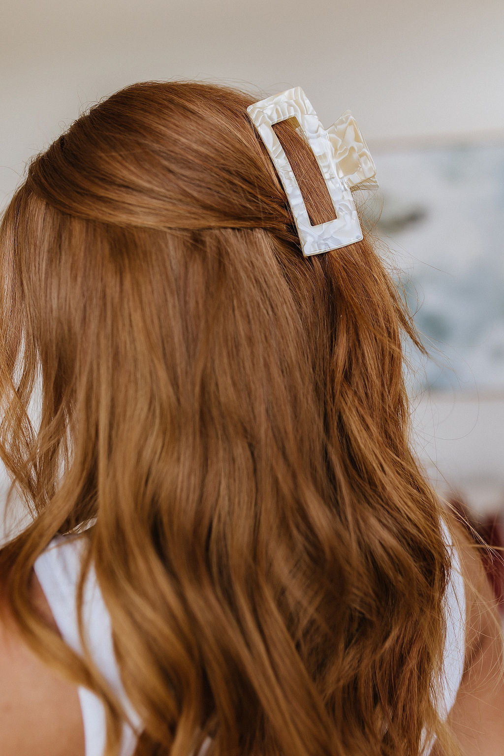 Sport a timeless look with this stylish gold pearl marble Rectangle Claw Clip. With its large claw, this clip can hold a lot of hair in place, and its rectangle shape gives a unique twist to any classic hairstyle. Make a statement and step up your beauty routine with this hair accessory!