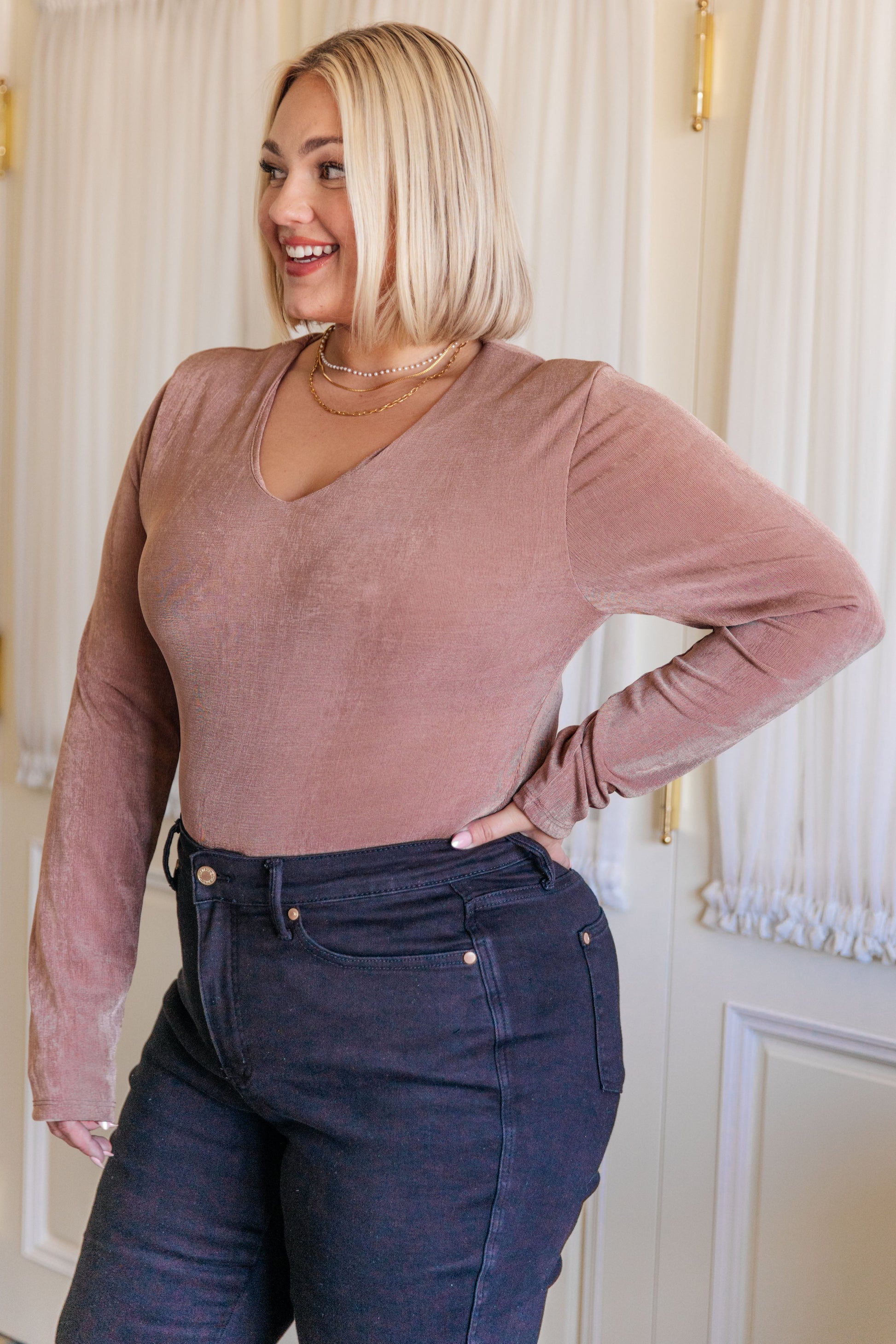 Feel glamorous and luxurious in our Wrapped in Bronze Bodysuit. Crafted from shimmery knit fabric and lined in the front for comfort, this bodysuit has a soft v-neckline and long sleeves that provide a timelessly stylish look. Dare to be fabulous and get Wrapped in Bronze today!